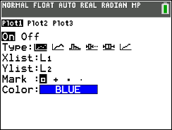 To see the scatter plot press ZOOM and #9 ZOOMSTAT, Hitting TRACE and right arrow will move along the data points.  |