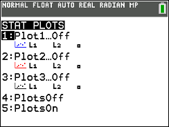 Go to STATPLOT (2nd Y=) and choose the first plot. Turn the plot