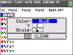 • Arrow to the left of "Y1 =", but this time you will get a box formed around the color, line, and Y1 =.